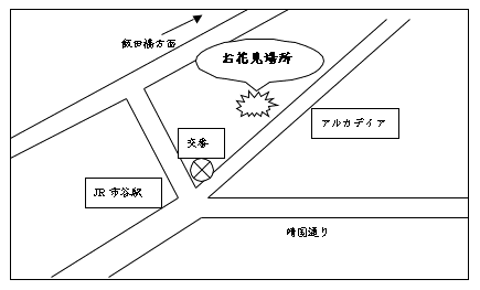 (駅前交番裏土手沿い2〜3分のところ 千代田区九段北4-2辺り)
